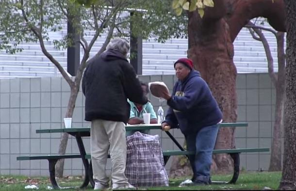 Beskućnik je prvo ušao u prodavnicu alkoholnih pića i izašao s nekoliko vrećica, a zatim se uputio u obližnji park. Ono što je usledilo dirnulo je milione ljudi širom sveta. Naime, čovek je iz vrećica počeo da vadi hranu i da je deli s ostalim beskućnicima.