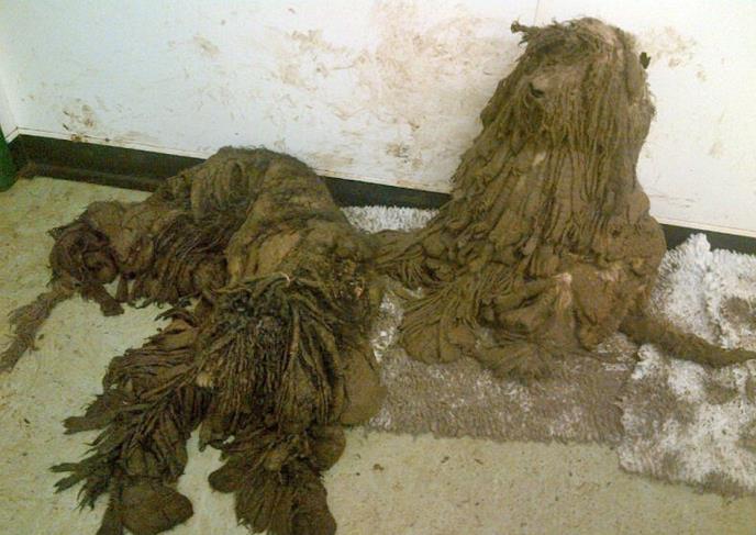 Ljudi iz organizacije za zaštitu životinja pod nazivom RSPCA utvrdili su da su u pitanju pudlice, i to osam štenaca i majka. Oni su pronađeni u izuzetno zapuštenom stanju, sa predugačkim i teškim krznom prekrivenim prljavštinom.