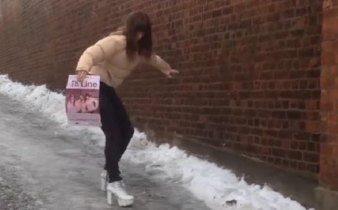 Primer kako ne treba, postao je uputstvo u "preživljavanju" za moderne devojke u visokim potpeticama na zaleđenim ulicama. Ovaj video to upravo i dokazuje