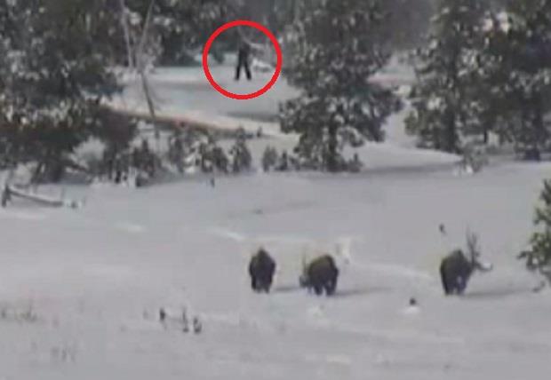 SAD - Video simljen u Jeloustoun parku u SAD trebalo je da pokaže bizone koji su tu nastanjeni, ali je očigledno otkrio i nešto mnogo više, prenosi britanski Dejli mejl.