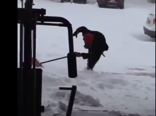 Rašad Kole iz Lexingtona u Kentikiju, čistio je sneg lopatom i onda se okliznuo. Narednih devet sekundi teško je rečima objasniti pa je najbolje da pogledate video.