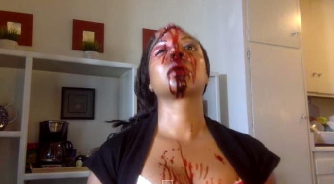 Naime, video počinje tako što devojka snima tutorijal za šminkanje, taman kada stigne do dela senčenja očiju, reakcija postaje vrlo strašna. Ona najpre deluje potpuno izgubljeno i uplašeno, a onda mahnito počinje da udara glavom o tastaturu, sto i monitor...