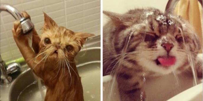 Mačke su stalno zauzete čišćenjem sebe, ali većina ne želi da se kupa. Smatra se da mačke mrze kada ih neko potopi u vodu i to ih čini nesrećnim.Kada same osete čari vode bez prisile, one počinju da uživaju u svojih 9 života. Bukvalno. Da li vam smeta? Pokušavam da uživam u svojoj kupki...