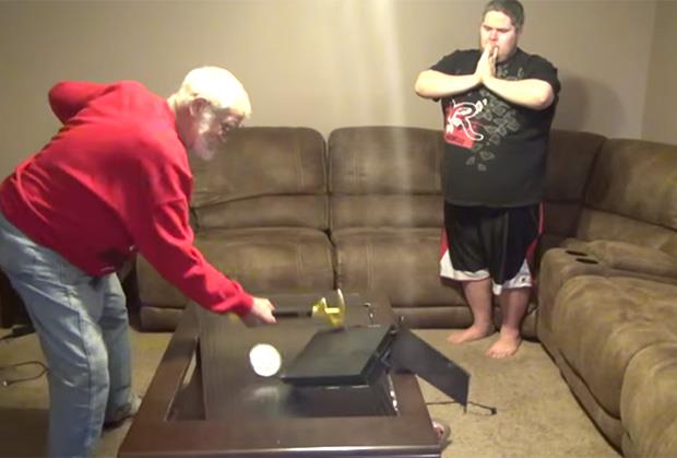 Vidno besan počeo je da se dere na unuka, uzeo je Plejstejšn i bacio ga na sto, a zatim ga u nedogled podizao i bacao, dok ga nije slupao.