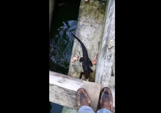 Momak koji se očigledno pravio mangupom imao je više sreće nego pameti dok je pravio ovaj video snimak. Naime, on hoda po takom zidu i lako može da upadne u bilo koji boks koji je prepun besnih krokodila, a kako i ne bi bili besni kada su zatvoreni u betonskoj kocki.