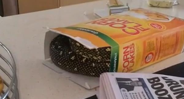 (VIDEO) POSLE OVOG SNIMKA NEĆETE VIŠE JESTI PAHULJICE: Piton u kutiji kornfleksa