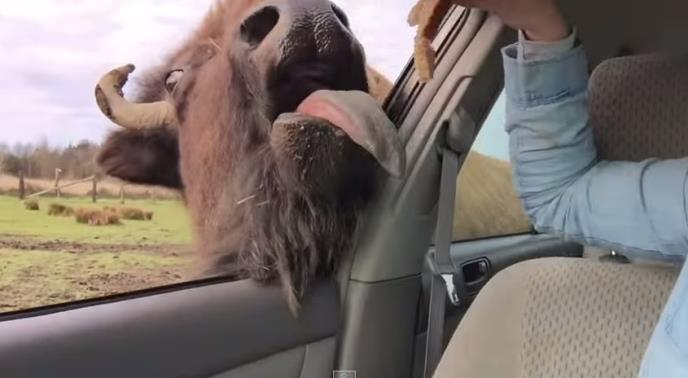 Naime, ovaj bivo je baš bio prijateljski nastrojen sa ljudima, pa je dobio i grickalicu, ali njegov jezik je šokirao devojku koja se nalazila u kolima.