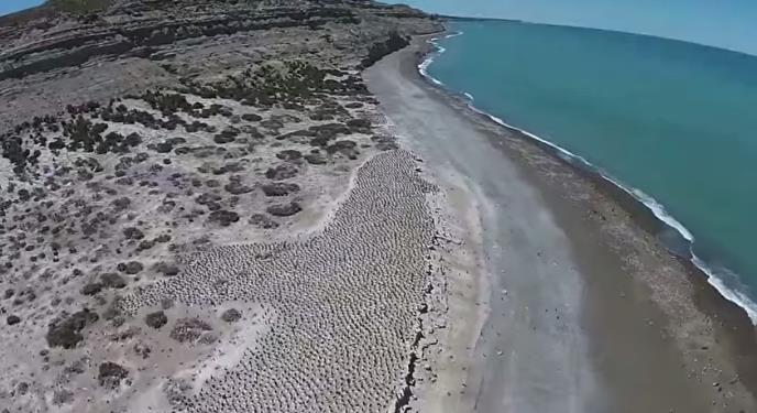 Video koji je snimljen dronom, vidi se više od 5.000 parova kormorana koji su se poređali jedno pored drugih a plaži i sede na svojim jajima. To je oko 10.000 ptica i njihovi mladunci koji su zauzeli 2.000 kvadratnih metara.