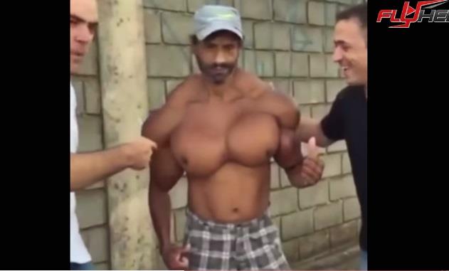Kada steroidi odu u pogrešnom smeru, može da se desi da muškarac postane isfeminiziran, ali i da poput ovog mačo muškarca dovije grudi za koje mu treba i dobar brushalter.