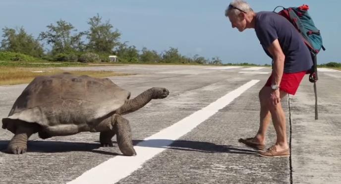 Naučnik i istraživač Nacionalne geografije , Pol Ros, na Sejšelima je, dok je snimao dokumentarac, naleteo je na dve velike kornjače u najnezgodnijem trenutku - za vreme parenja.