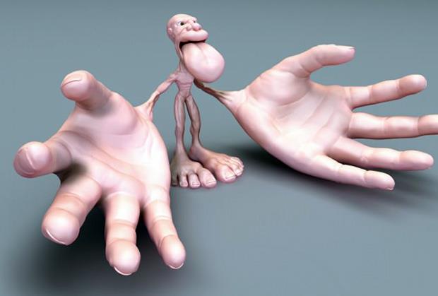 Ovako naš mozak oseća naše delove tela! Intenzitet koncentracije u smislu moždanih aktivnosti po kriterijumu delova tela dovodi do ove ilustracije. Jednostavnije, ako gledamo na to koliko mozak "obraća pažnju" na koji deo tela, dobijemo sliku jednog ljudskog tela koje izgleda potpuno deformisano.