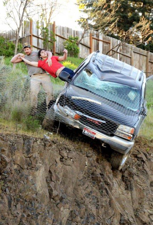 Juče oko 8 sati ujutro, na nibrdici kod Kanjona Bradej dogodila se teška saobraćajna nesreća. Vozač Metju Sitko (23) projurio je kroz dvorište i preko dve terase pre nego što je naleteo na žičanu ogradu. Ona je zadržala vozilo, koje je ostalo da visini na litici.