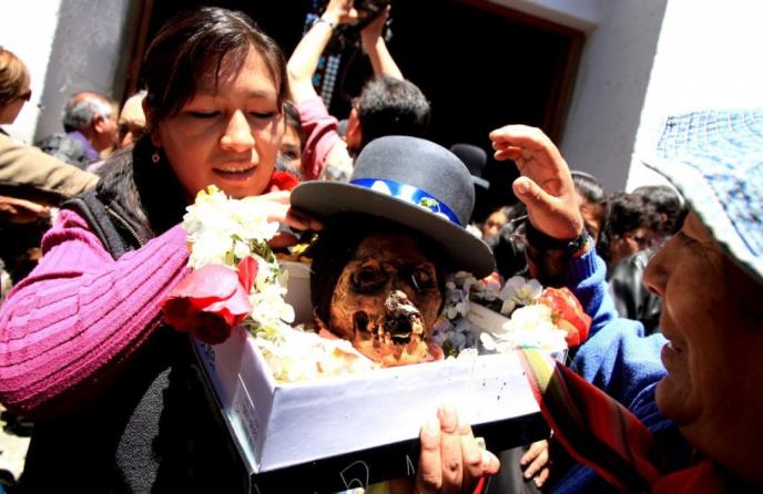 U La Pazu, Bolivija, ljudi slave mrtve festivalom lobanja, gde svi šetaju sa lobanjama svojih rođaka.