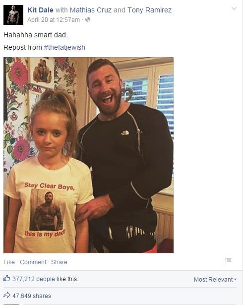 S obzirom na to da je on jedan veoma fizički jak momak, sav iscrtan tetovažama, Kit Dejl odlučio je da svim potencijalnim udvaračima svoje ćerke to stavi do znanja, tako što će ćeru da obuče u majice sa svojim likom, na kojima piše “Ruke k sebi momci, ovo je moj tata!”