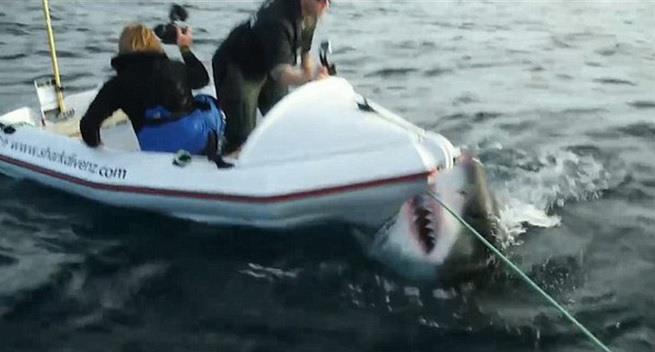 (VIDEO) DA SE SMRZNEŠ: Ogromna ajkula napala ljude u gumenom čamcu