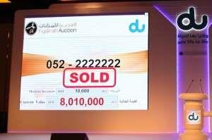 Broj je prodat za 8.100.000 dirhama lokalnom biznismenu, što je novi rekord na aukcijama za broj mobilnog telefona u Ujedinjenim Arapskim Emiratima