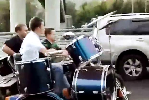 Ni manje, ni više, ovaj metal bend iz Rusije montirao je na jednom motoru kompletnu postavku za binu, a onda su krenuli! Na sred autoputa, oni su počeli da sviraju u punom sastavu i apsolutno ništa im nije smetalo! Prolaznici su snimali, a jedan od tih snimaka postao je potpuni hit!