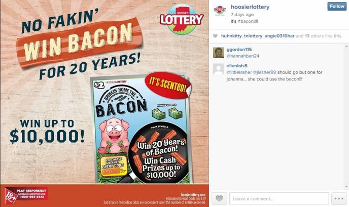 Kada bi morali da biraju između novca i svoje omiljene hrane, mnogi ne bi mogli da se odluče samo za jedno. Zato je jedan Amerikanac odlučio da uklopi obe stvari i da pokrene lutriju na kojoj možete dobiti ne samo 10.000 dolara već i dvadesetogodišnju zalihu slanine. "Greb-greb" tiketi koštaju dva dolara i kada ih ogrebete može se osetiti miris ovog mesa.