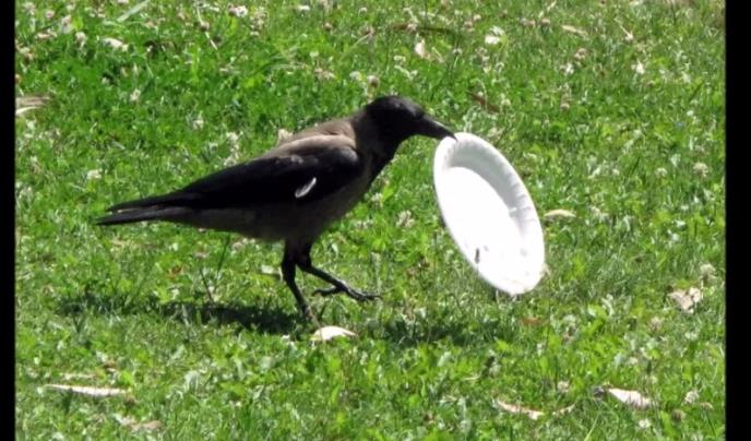 Na njima se vidi vrana kako prvo jede ostatke pirinča iz jednog tanjira koji je neko ostavio usred parka. Nakon što je završila s obrokom, vrana je svojim kljunom uzela tanjir i odnela ga u kantu za smeće.