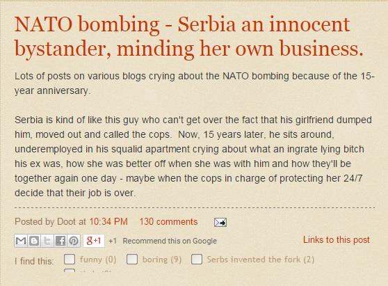 Na petnaestogodišnjicu NATO bombardovanja, bloger je odlučio da napiše svoje viđenje cele situacije u našoj zemlji, pa jke to opisao ovako:
