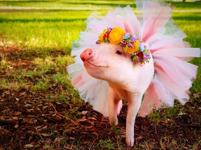 Mikro prase Hamlet postalo je hit na Instagramu zahvaljujući svojoj baletskoj suknjici i kostimima.