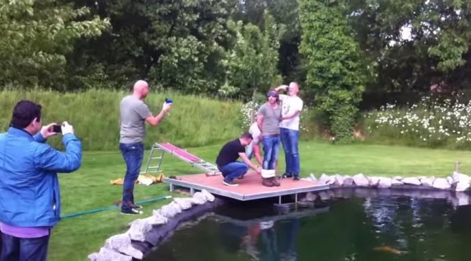 Mladoženja je naglavce uleteo u hladnu vodu, dok su se njegovi drugovi valjali od smeha.