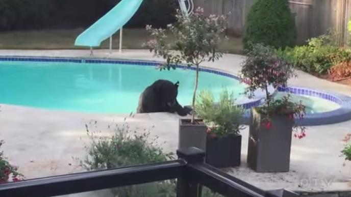Nepoznat gost iskoristio je to što nikog nije bilo kod kuće i odlučio da se rashladi u njihovom bazenu i đakuziju. Verovatno ne pretpostavljate, nepoznat gost je ogroman crni medved.