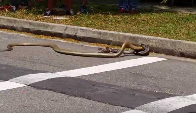 Dve ogromne zmije borile su se jedna protiv druge na jednoj ulici u Singapuru.