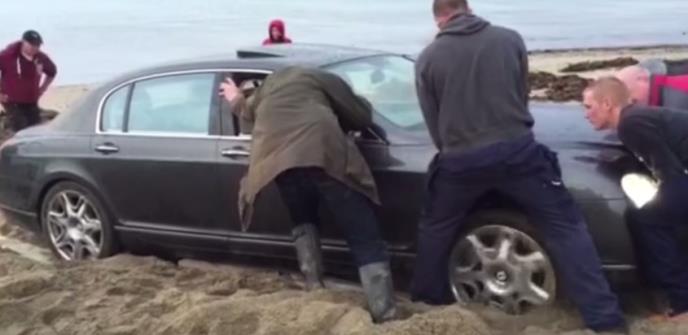 Kako li se osećao mladić kada se sa bentlijem zaglavio u pesku na plaži