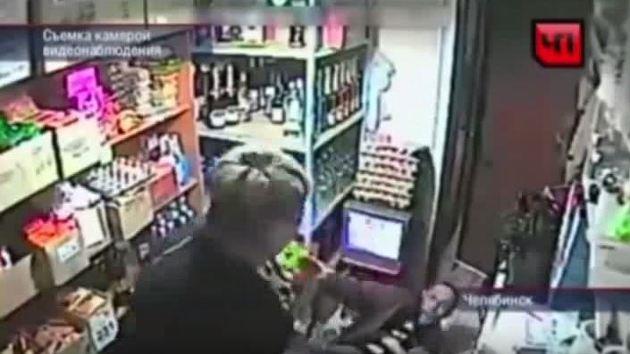 Procureo je snimak sa sigurnosne video kamere iz Rusije koji pokazuje dvoje ljudi koji se prepiru u prodavnici nakon što je bivši bokser pokušao da udari ženu u lice.