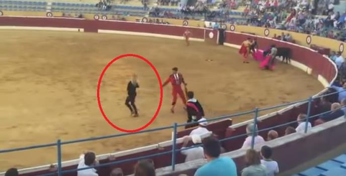 MALAGA, ŠPANIJA - Video snimak prikazuje trenutak kada švedska porno zvezda uskače preko tribina u koridu gde se odigrava borba sa bikovima i pokušava da uteši bika koji je ranjen.
