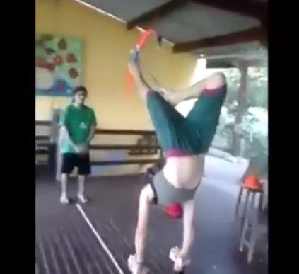 Zatim se izvila ka gore, rukama se oslanjajući, dok su joj noge bile u visu.