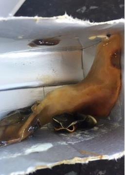Lori je, pošto je popila gutljaj soka, osetila mučninu, a kada je presekla ambalažu zgrozila se ugledavši životinju nalik pužu