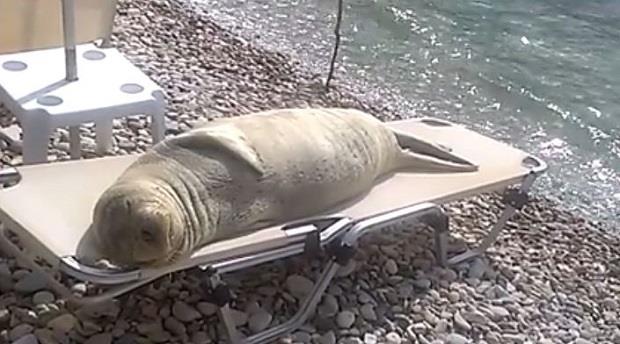(VIDEO) BAŠ GA BRIGA ZA SVE: Morski lav uživa na ležaljci