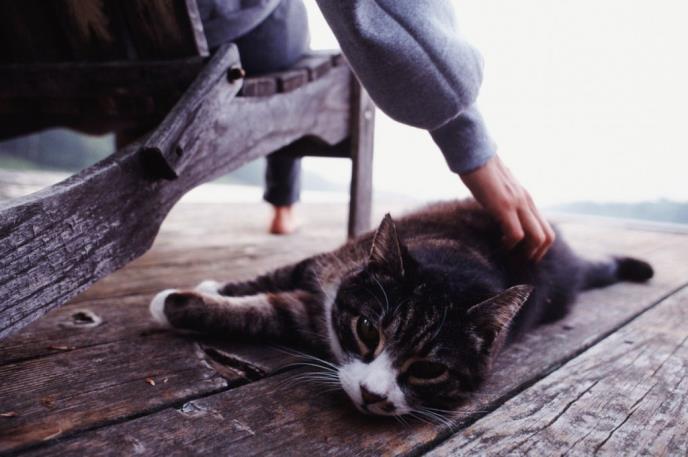 Jasno se mogu videti suze koje se slivaju niz macinu glavu i kaplju na sto.