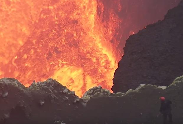Naoružani kamerama i zaštitnim odelima, istraživači Sem Kozman i Džordž Kurunis su prišli ključaloj lavi onoliko blizu koliko to ljudsko telo dozvoljava. U krater, dubine 365 metara, Marum vulkana na Ambrimskom ostrvu, Kurunisa možemo videti na snimku u zaštitnom odelu veoma blizu lave.