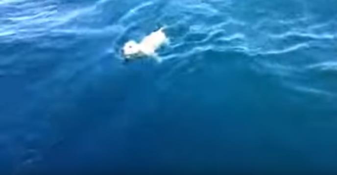 Par trenutaka kasnije shvatili su da se radi o kuci koji je svim snagama plivala pokušavajući da se održi na površini.