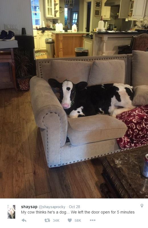 Upravo se ona pre nekoliko dana na Tviteru pohvalila fotografijom 'bika - psa' Golijata koji se ušuljao u kuću i seo na trosed, baš kao što to inače čini pas.
