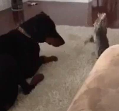 Kasnije je i pokušao da se igra sa njom, ali ona je i dalje bila borilački nastrojena.