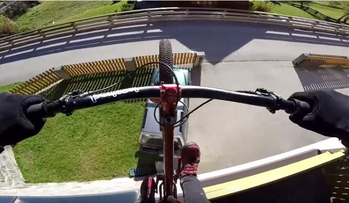 U nameri da pobegne od policije, biciklista po imenu Fabio Vajbmer je vozio svoj bickl po krovu kuće, sve preko stolova i dasaka.