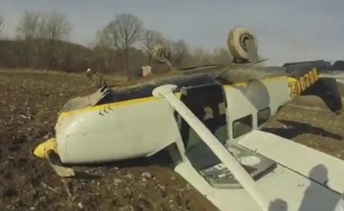 Video snimak prikazuje kako avion brzo pada ka zemlji, pre nego što uz jak prasak udara u blatnjav teren, sa jednim od putnika koji se vidi kako grabi očajnički po bočnoj strani.