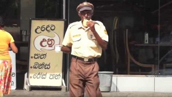 Na snimku upoznajemo 60-godišnjeg čuvara po imenu V.V. Sugatpala, 80 kilometara južno od Kolomba, Šri Lanka. Prema intervjuu u Dejli Miroru, oni su se upoznali kada su Vorsman i njegova devojka odlučili da posete Nju Monis pekaru. On se podsetio da je "čudni" čovek zviždao i igrao na sred ulice.
