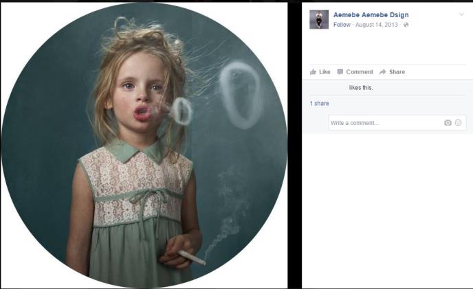 Ona je odlučila da napravi seriju fotografija na kojima poziraju deca s cigaretom u ruci obučena u odeću odraslih.