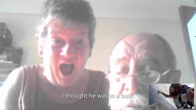 A Rodžer Rajan, koji je svoje roditelje pozvao iz Australije, malo je ekstremniji slučaj. Naime, Rodžer nije rekao svojim roditeljima da se nalazi u avionu a samo nekoliko koraka delila su ga od ambisa. Njegova majka i otac odreagovali su na jedinstven način kada su videli da je njihov sin skočio iz aviona. Isprva, par iz Irske izgleda šokirano, ali uskoro postaje očigledno odakle je njihov sin nasledio smisao za humor.
