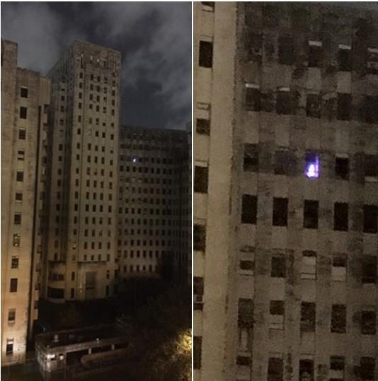 Medicinska sestra u Tulanu Liza Volej Stedž kaže da se njoj činilo da kroz prozor svetli malena božićna jelka, pišu lokalni mediji. Pošto se priča o sablasnom prozoru proširila društvenim mrežama, reagovala je i lokalna policija. Obišli su napušteni kompleks i otkrili da je neko provalio u zgradu i postavio dva reflektora.