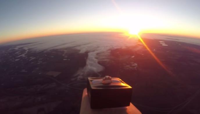 Prikačio je prsten u kutijici za kuhinjsku varjaču, a to sve za balon sa GoPro kamerom. Kada je to stiglo do svemira u klipu se pojavilo pitanje: "Mejlin, hoćeš li da se udaš za mene?".