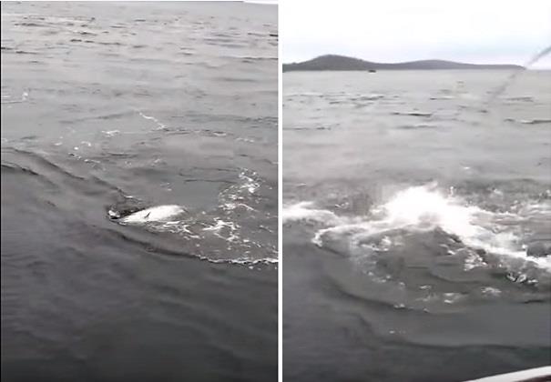 Tomas je zabeležio frapantan snimak dok je na obali Kanade pecao. Naime, kada mu je losos od 9 kilograma zagrizao mamac i otpočeo borbu sa štapom, iz dubine mora uzdigao se ogromni predator i ukrao mu lovinu.