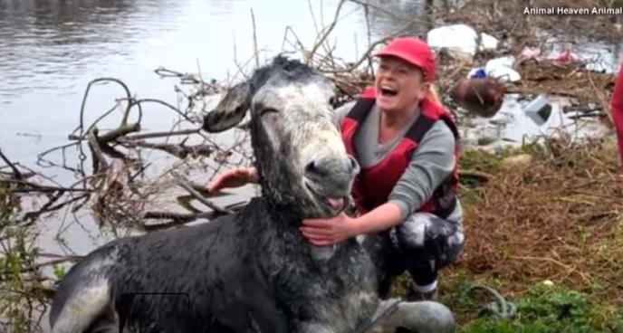 5. Magarac se smeje od uva do uva nakon što je spasen iz poplava u Irskoj.