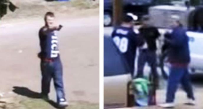 Ovde je situacija još gora, ovaj mladić je izvukao pištolj na nekoga i glumi kao da je u pitanju bila samo šala. Ko god da je vlasnik ove sigurnosne kamere ovo treba da prijavi policiji pre nego što zaista nekoga ubiju, računajući na to da još uvek nisu.
