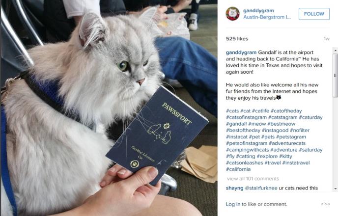 Dvogodišnji sibirski mačak, Gandalf, trenutno živi u Kaliforniji sa svojim vlasnicima, obožava da putuje više od bilo koje druge mačke.